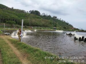 Berdasarkan tabel diatas dapat diketahui bahwa produksi budidaya ikan air tawar di Kabupaten Blitar yang tertinggi pada tahun 2021 adalah produksi ikan lele dengan prosentase 57 % dari total produksi. Sentra pembudidaya pembesaran ikan lele tersebar di beberapa kecamatan di Kabupaten Blitar seperti Kecamatan Selopuro, Kecamatan Talun, Kecamatan Nglegok, Kecamatan Kanigoro, Kecamatan Sanankulon, Kecamatan Sutojayan dan beberapa kecamatan lainnya. Produksi pembesaran ikan gurami menduduki tempat kedua dengan prosentase 39% dari total produksi, untuk sentra pembesaran ikan gurami terdapat di Kecamatan Wonodadi, Kecamatan Sutojayan dan beberapa kecamatan lainnya. Produksi ikan nila mempunyai prosentase 3% dari total produksi pembesaran ikan air tawar di Kabupaten Blitar pembudidaya ikan nila banyak dijumpai di wilayah Kecamatan Wlingi, Sutojayan, Nglegok, Selorejo dan lain2. Untuk produksi udang vaname memiliki prosentase 2% dengan nilai produksi pada tahun 2021 sebesar 410.700 kg produksi udang vanamae ini terdapat di daerah tambak Desa Serang Kecamatan Panggungrejo (Gambar 3) dan 1 lokasi tambak berada di Desa Ringinrejo Kecamatan Wates dan 1 lokasi tambak berada di Kecamatan Bakung.